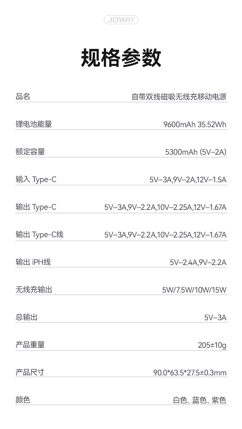 名稱:自帶雙線磁吸無線充移動(dòng)電源