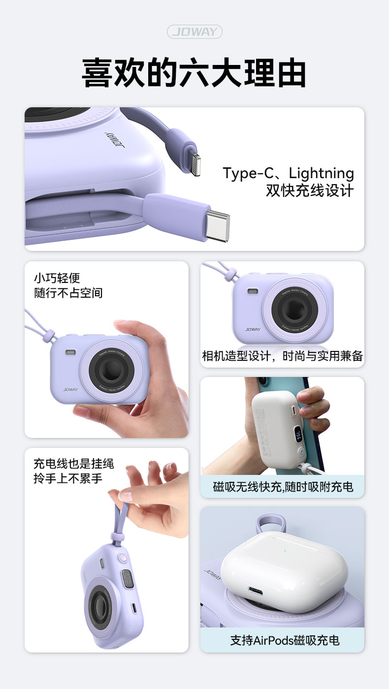 JP515 自帶雙線磁吸無線充電寶