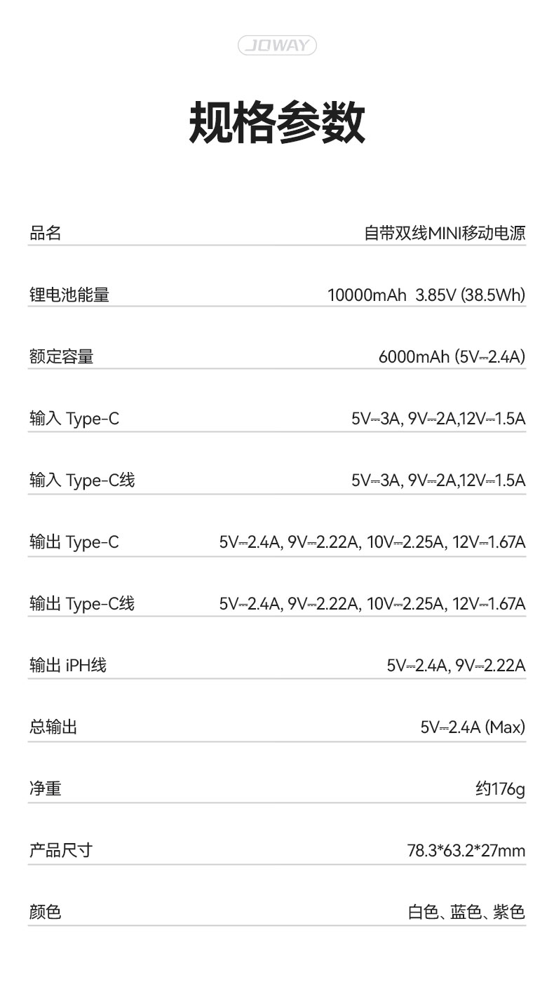 名稱(chēng):自帶雙線MINI移動(dòng)電源