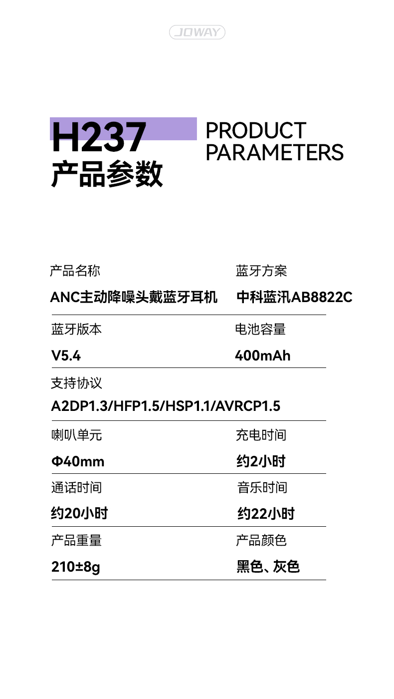 H237 ANC主動(dòng)降噪頭戴藍(lán)牙耳機(jī)